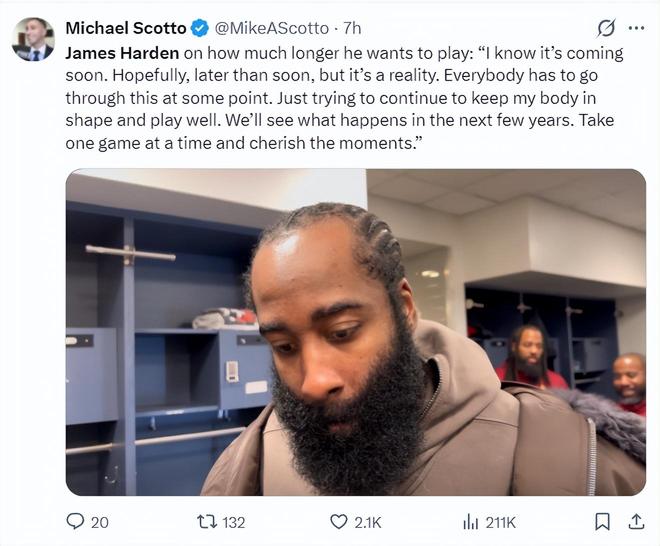 哈登出战骑士7胜1负!又刷2队史首人纪录 场均19+8拒绝手术超强硬